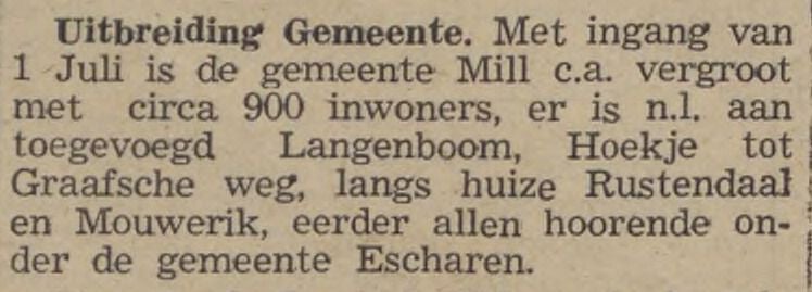 Bij de opheffing van Gemeente Escharen in 1942 werd de Campagnelaan de grens tussen Escharen en Mill. De Campagnelaan bleef Escharen maar het landgoed De Russendaal viel voortaan onder Langenboom/Mill.
