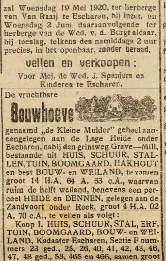 Onderstaande tekst komt uit het 'kohier der Vaste goederen, Gemeente Escharen, 1806'.