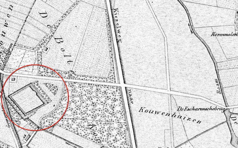 De huidige Kranenhofscheweg loopt langs het perceel waar eens de impossante bouwhoeve/kasteel De Kranenhof gelegen heeft.