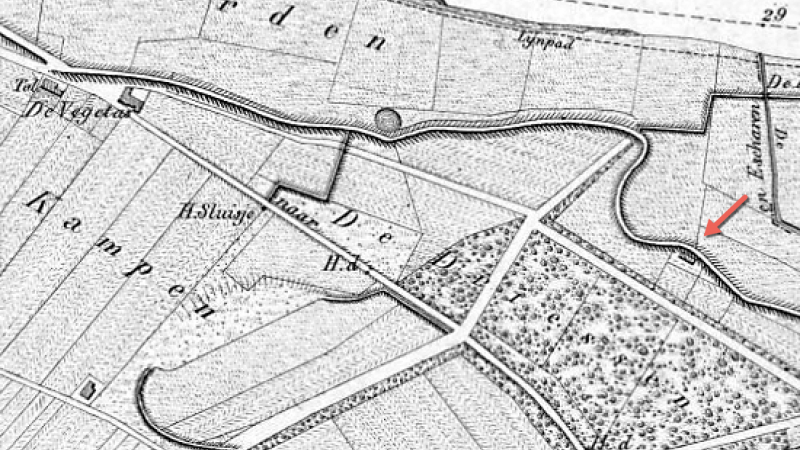 Een stukje bouwland dat grensde aan het erf van boerderij Hoog Escharen of te wel Het Uivernest. Het lag dus op de Bullen, tussen de Beerschemaasweg en deze boerderij in.