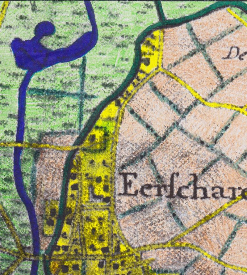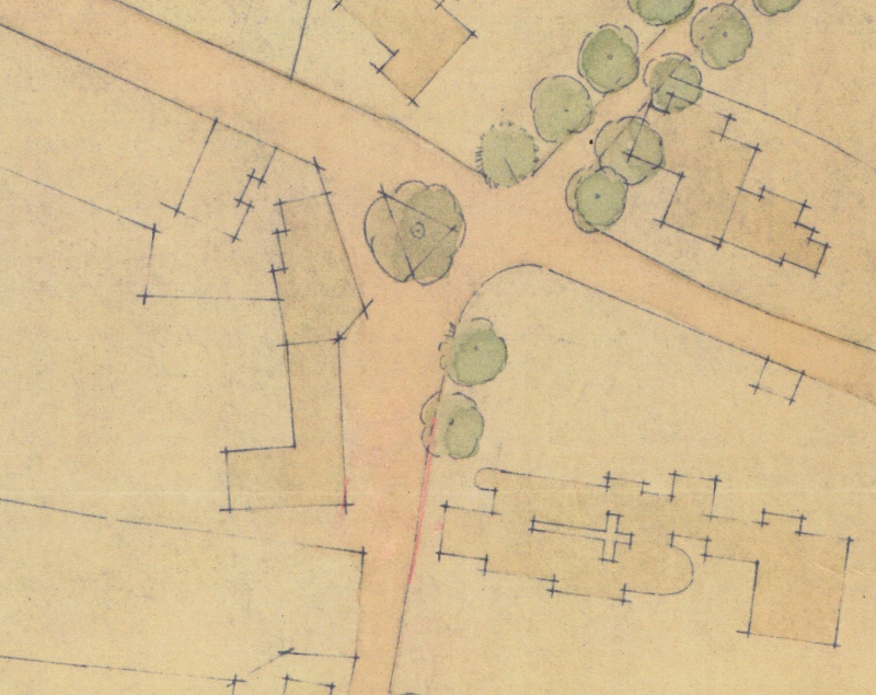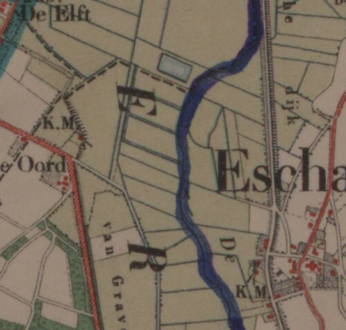 Plattegrond van de kom van Escharen voor de brand van 1941.