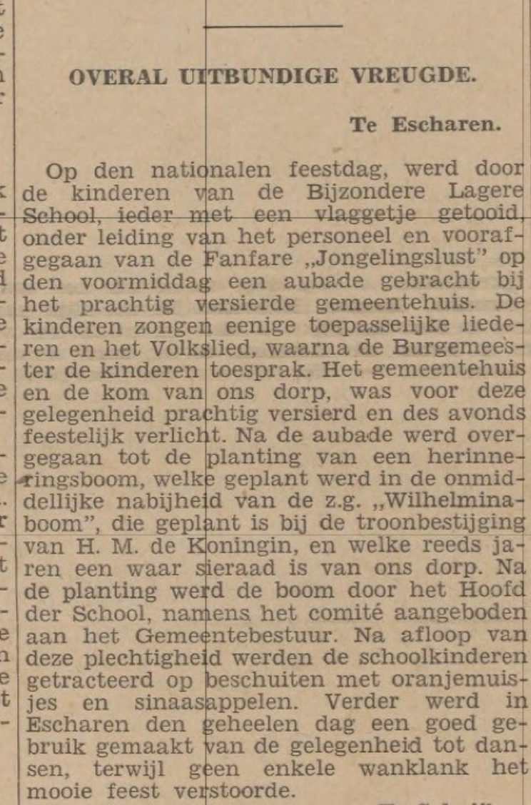 Het krantenartikel uit 1938, geeft aan dat er bij de geboorte van prinses Beatrix ook een herinneringsboom geplant zou zijn.