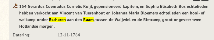 Hieronder is een akte uit 1764 te zien waarin al over deze wiel gesproken wordt. In nog oudere archieven komen we in 1560, ook de naam 'die Waije' voor deze wiel tegen.